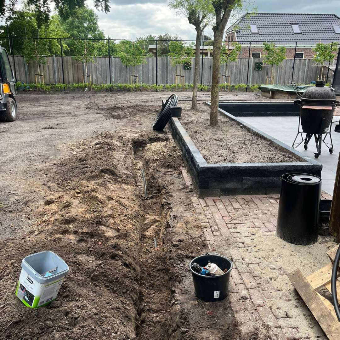 Tuinaanleg, grondwerk, bestrating en buitenpandige rioleringswerkzaamheden